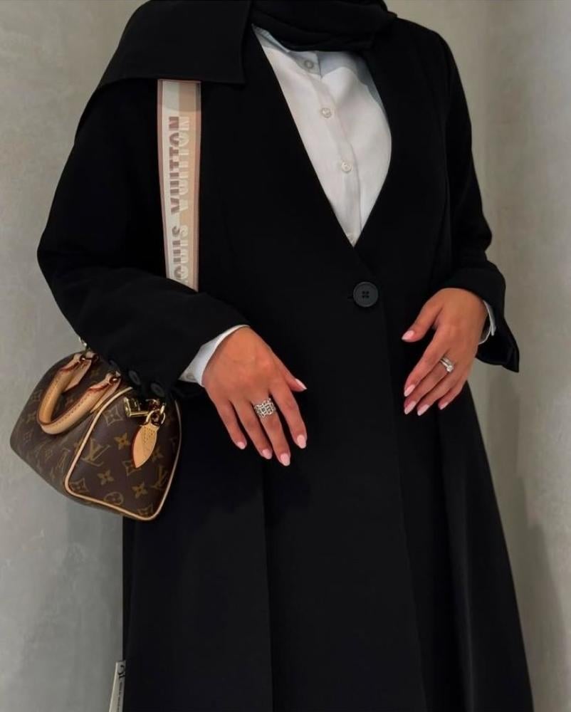- الأكمام الطويلة: تغطي الأكمام الطويلة ذراعيك بالكامل، مما يوفر لكِ الاحتشام والوقار، كما أن النقوش الشبكية على الأكمام تضيف لمسة من الأنوثة والجمال على العباية.