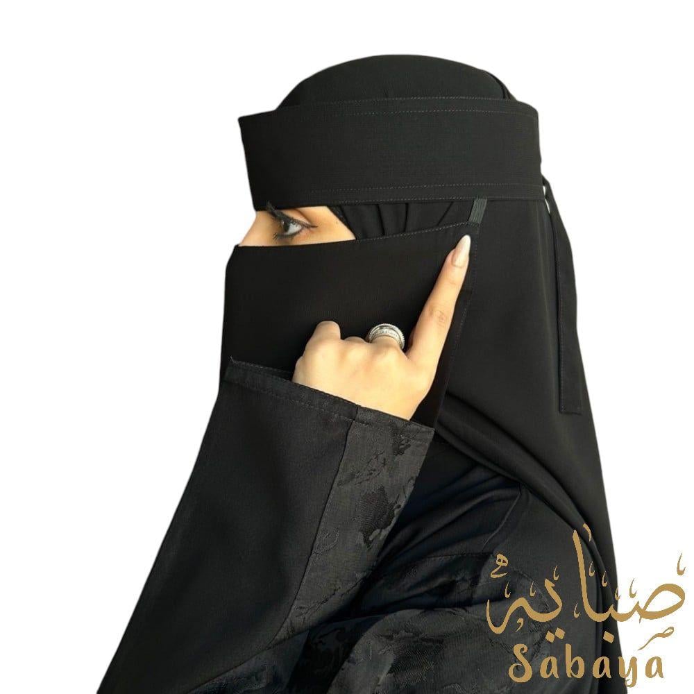 نقاب مطاط مايل هو نقاب عملي يتميز بتصميمه الذكي الذي يغطي الوجه بشكل كامل مع فتحة مائلة للعينين، وهو ما يتيح لكِ الرؤية بوضوح دون التنازل عن الستر والحشمة.